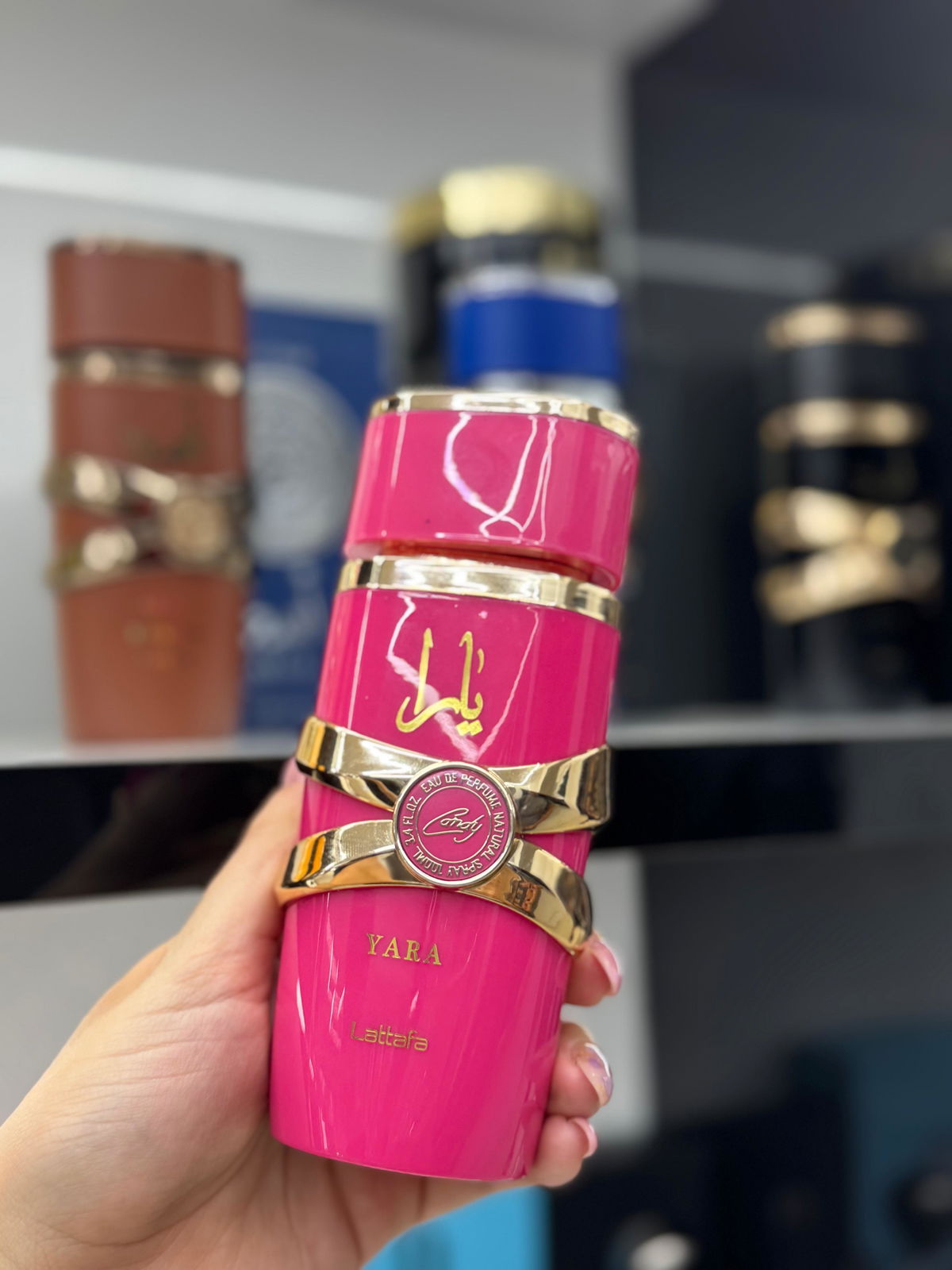 Yara Candy de Lattafa Perfumes es una fragancia de la familia olfativa Floral Frutal Gourmand para Mujeres. Esta fragrancia es nueva. Yara Candy se lanzó en 2024. Las Notas de Salida son grosellas negras y Mandarina verde; las Notas de Corazón son Strawberry Fizz Candy y gardenia; las Notas de Fondo son vainilla, almizcle, ámbar y sándalo.