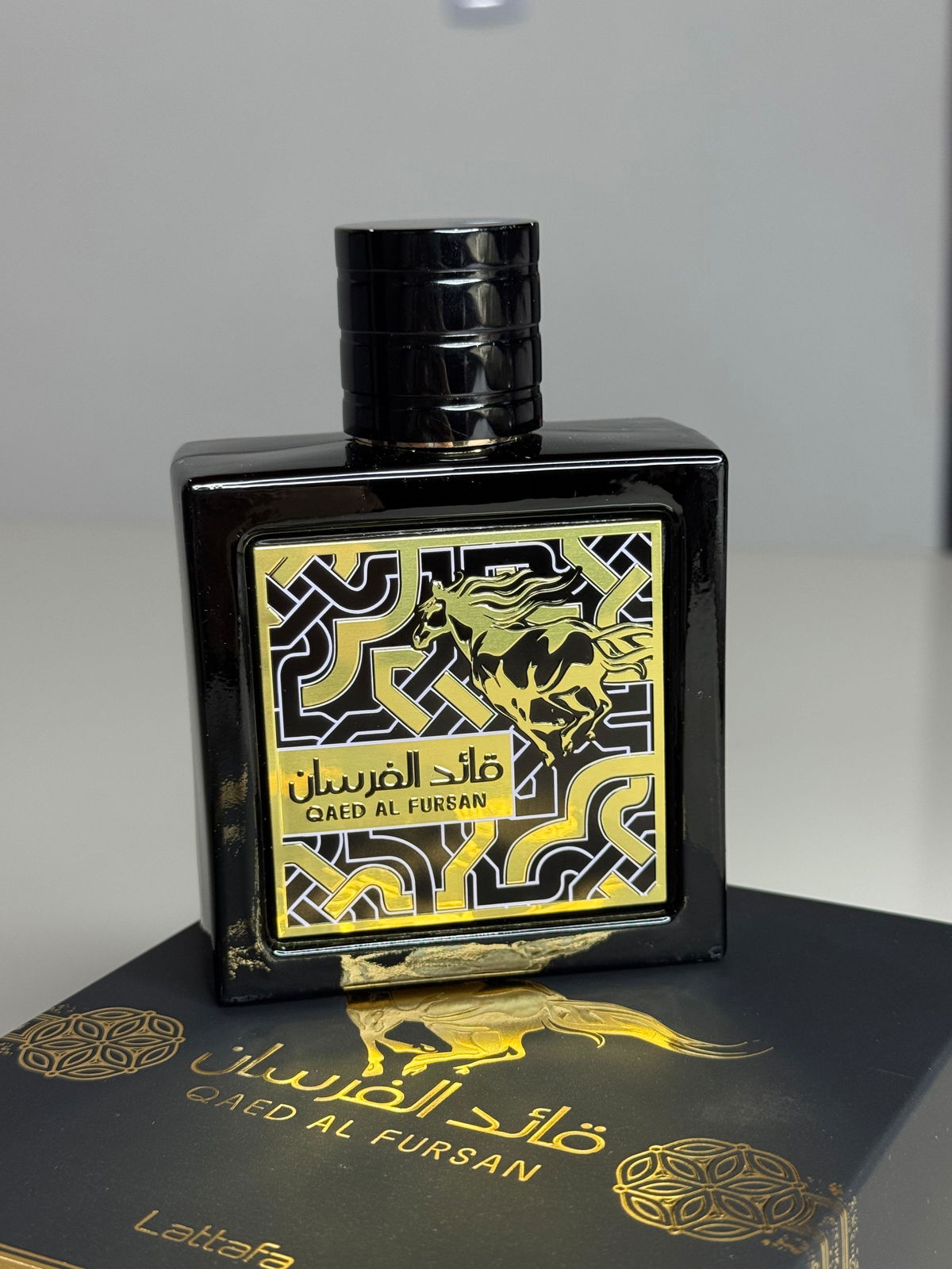 Qaed Al Fursan de Lattafa Perfumes es una fragancia de la familia olfativa Oriental Amaderada para Hombres y Mujeres. Qaed Al Fursan se lanzó en 2016. Las Notas de Salida son piña y azafrán; las Notas de Corazón son abeto balsámico y jazmín; las Notas de Fondo son ámbar, cedro y madera de oud.