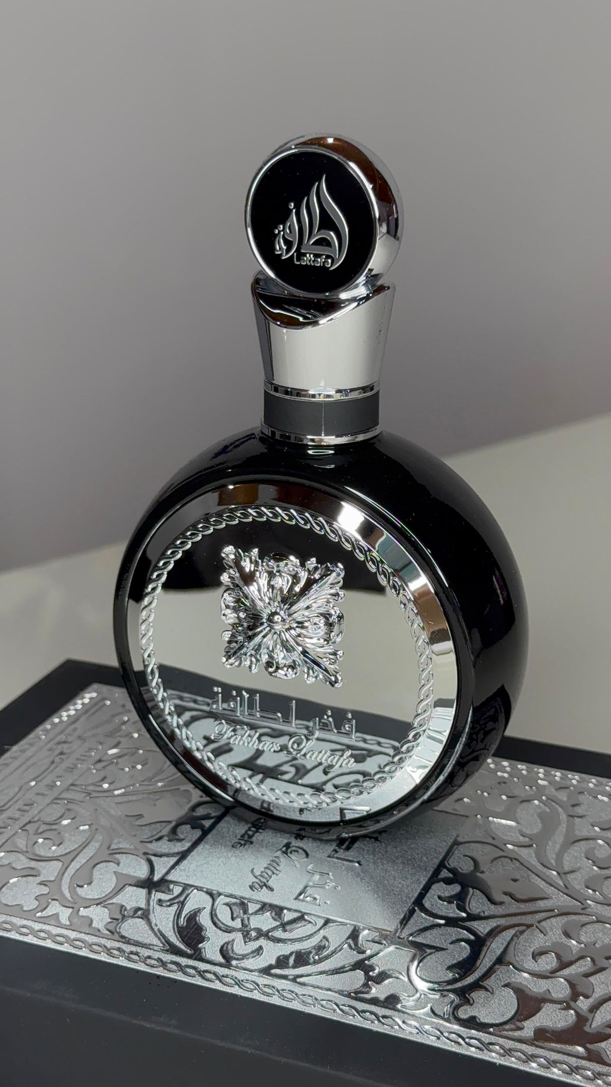 Fakhar Black de Lattafa Perfumes es una fragancia de la familia olfativa Oriental para Hombres. Esta fragrancia es nueva. Fakhar Black se lanzó en 2022. Las Notas de Salida son manzana, bergamota y jengibre; las Notas de Corazón son lavanda, salvia, bayas de enebro y geranio; las Notas de Fondo son haba tonka, cedro, Amberwood y vetiver.