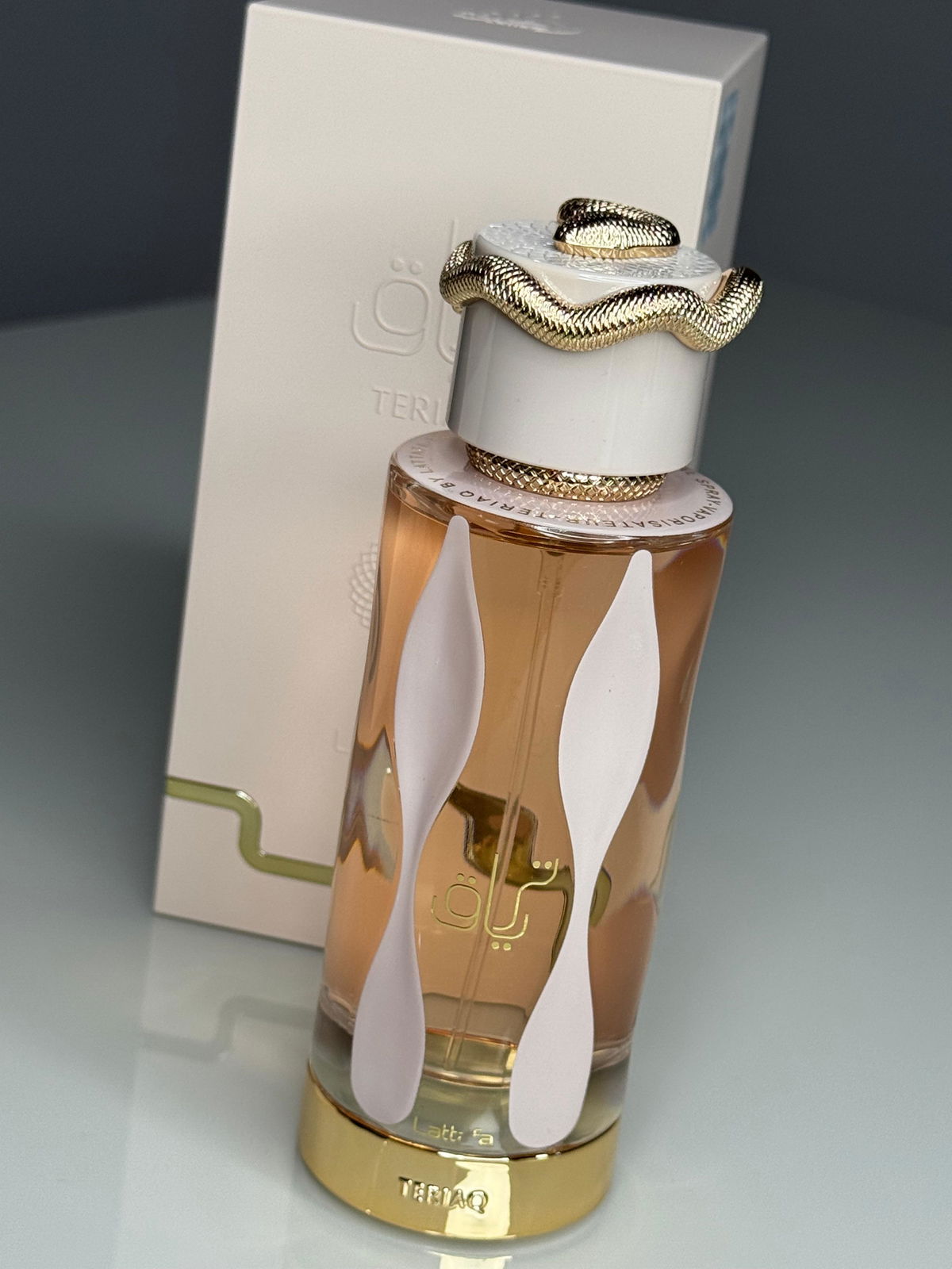 Teriaq de Lattafa Perfumes es una fragancia para mujer y hombre. Esta nueva fragancia se lanzó en 2024. Su autor es Quentin Bisch. Las notas de salida son caramelo, almendra amarga, albaricoque y pimienta rosa; las notas de corazón son miel, ruibarbo, flores blancas y rosa; y las notas de fondo son cuero, vainilla, almizcle, ládano y vetiver