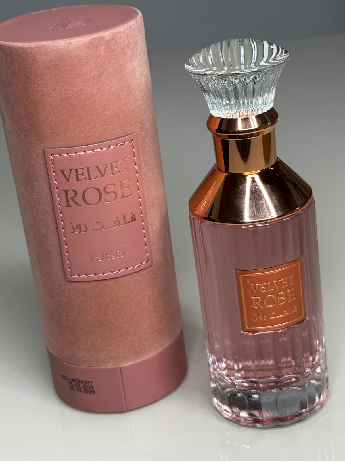 Velvet Rose de Lattafa Perfumes es una fragancia de la familia olfativa para Hombres y Mujeres. Las Notas de Salida son rosa y pachulí; las Notas de Corazón son almizcle y ládano; las Notas de Fondo son almizcle y ámbar.